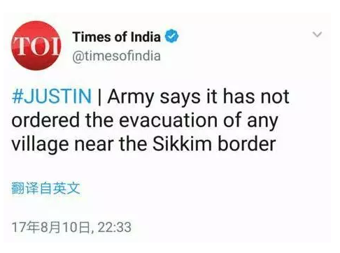 同時,據《印度時報》報道稱,印度軍方表示並沒有疏散錫金邊界任何村莊的命令。