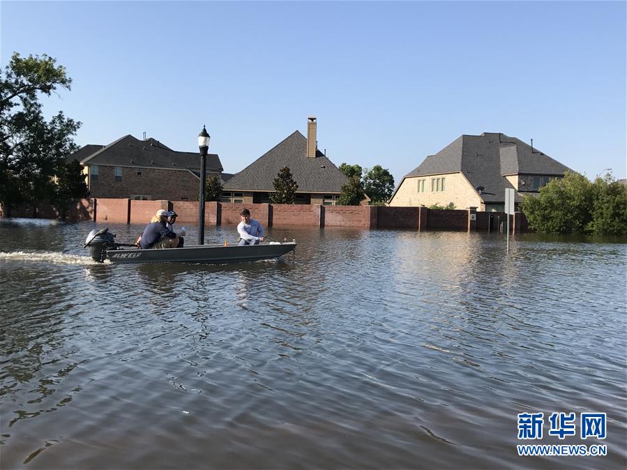 這是8月31日在美國得克薩斯州休斯敦西南部拍攝的一個遭受水災的居民區。近日影響美國得克薩斯州的熱帶風暴逐漸停歇,但是休斯敦部分地區的洪澇災害並未緩解。由於庫存水位突破上限,為防止潰堤給休斯敦市區造成更大災害,休斯敦西部兩座水庫於28日凌晨開閘泄洪,預計將持續一周。這致使河流水位持續上昇,部分居民區遭受水災。新華社記者高路攝
