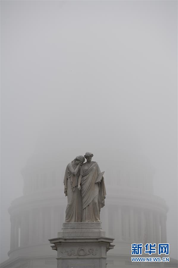 10月22日,在美國首都華盛頓,國會大廈籠罩在濃霧中。當日,華盛頓出現濃霧天氣,能見度較低。新華社記者劉傑攝