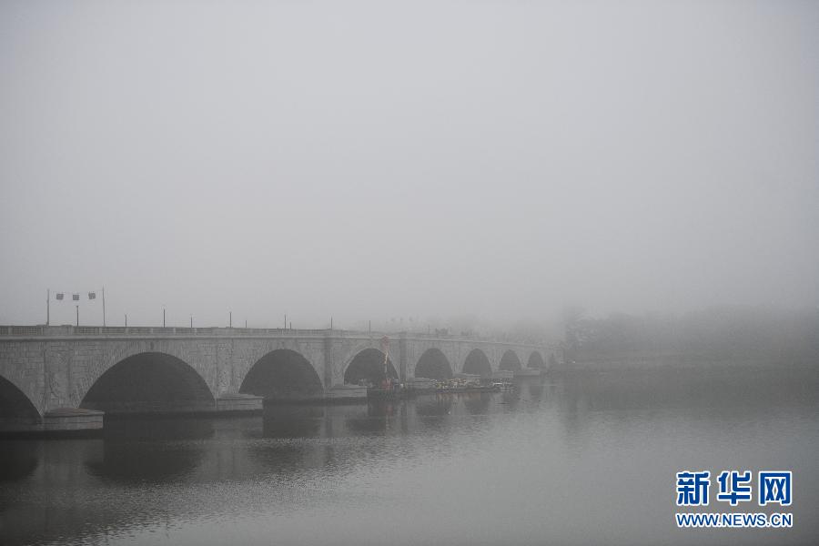 這是在美國華盛頓拍攝的濃霧中的阿靈頓紀念大橋(10月22日攝)。當日,華盛頓出現濃霧天氣,能見度較低。新華社記者劉傑攝