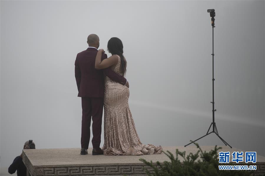 10月22日,在美國首都華盛頓,人們在濃霧中拍照。當日,華盛頓出現濃霧天氣,能見度較低。新華社記者劉傑攝