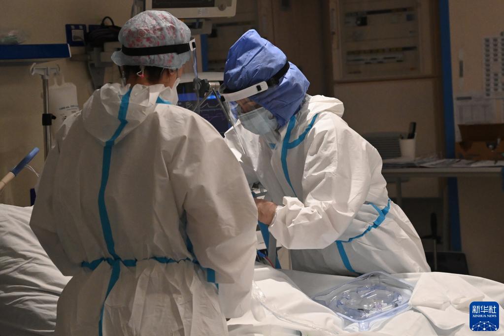 12月3日,醫務人員在意大利博洛尼亞一家醫院的新冠隔離區對患者進行治療。
